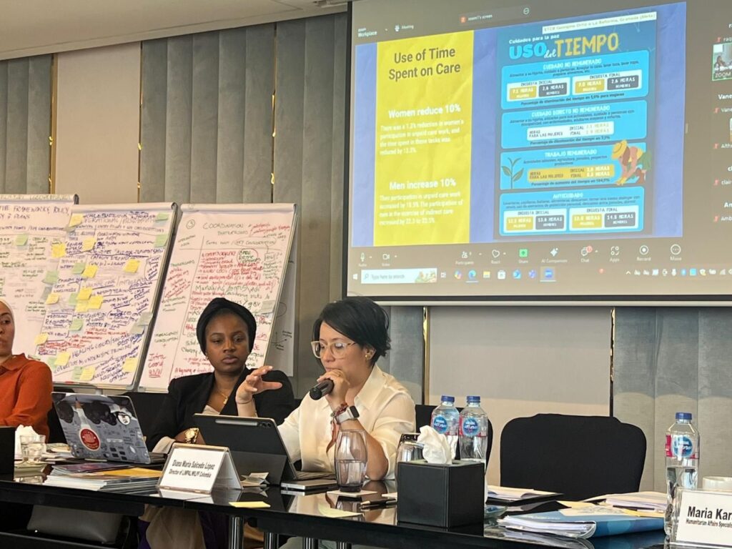 En la sesión, el Grupo de expertas de cuidados en sociedades en Crisis abordó soluciones para los desafíos del cuidado en entornos vulnerables. LIMPAL Colombia subrayó la urgencia de posicionar el cuidado como un pilar central de la vida, la resistencia y la defensa del territorio. Además, hizo un llamado a fortalecer la autonomía económica de las mujeres firmantes a través de fondos de inversión y a fomentar fomentar masculinidades corresponsables en el cuidado.